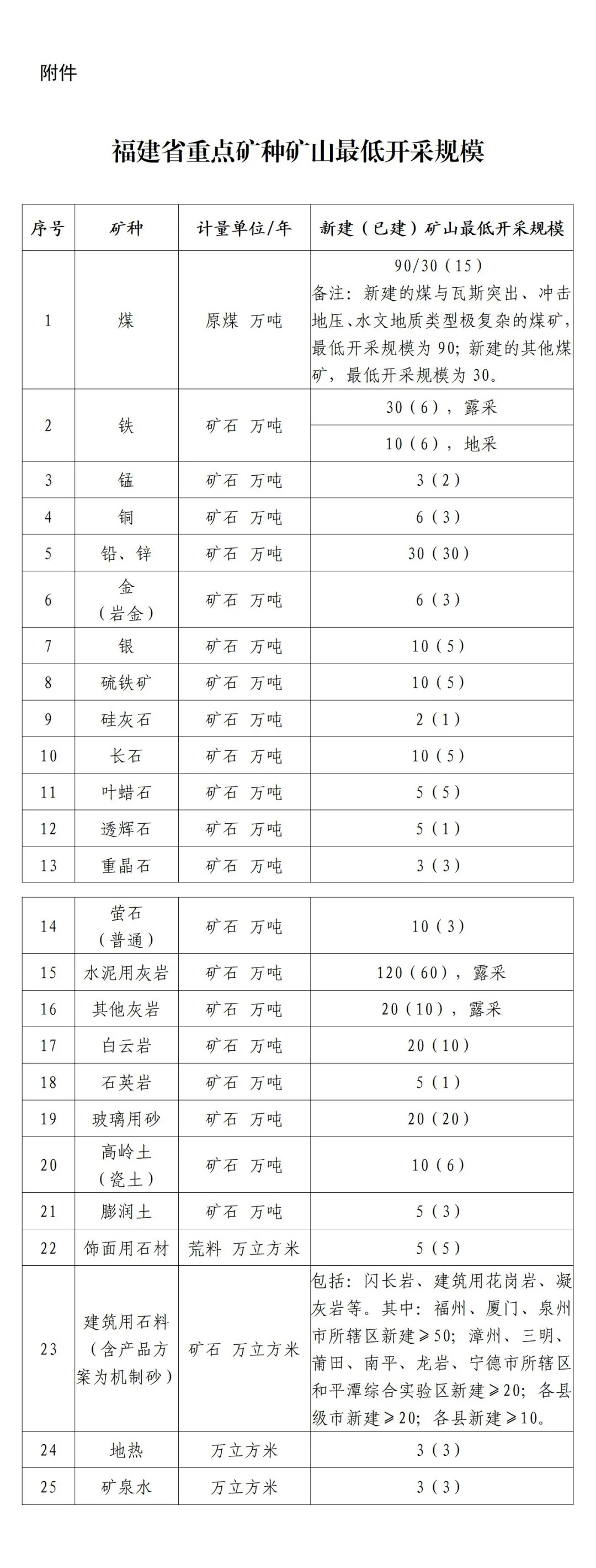 附件:福建省重點(diǎn)礦種礦山最低開采規(guī)模